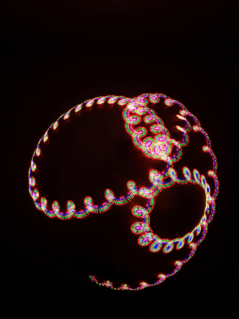 Neon tracks of the spiral are blurred in motion. light tracks of colored lights.