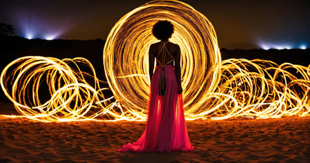 Fire dance performance truly showcases extraordinary skill, creativity, and artistry in the dark. Generative AI