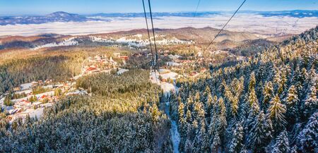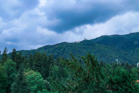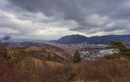 Brasov city panorama view from mountain landscape. Romania