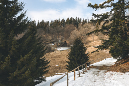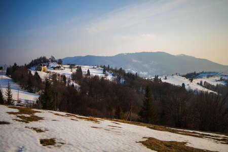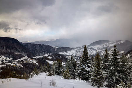 mountain landscape in winter on a cloudy day. Carpathian Mountains, Romania.