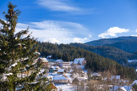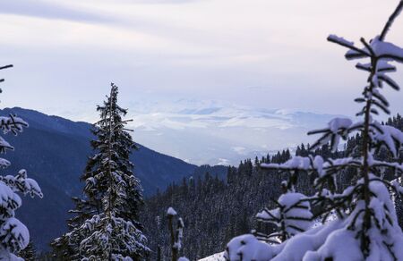 Winter, high mountains with snow white peaks. Location place Carpathian, Vatra Dornei, Bucovina, Suceava, Romania, Europe.
