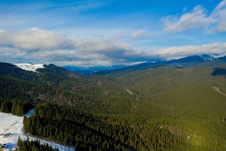 Aerial winter view of Rila Mountain near ski resort of Borovets, Sofia Region, Bulgaria