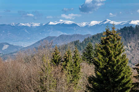 Little Fatra from Big Fatra mountais, Slovak republic. Hiking theme. Seasonal natural scene.