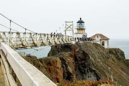 Sausalito, California, USA, 09 July 2017. Tourists watch the ocean from Point Bonita Lighthouse on a typical overcast and foggy day at the San Francisco Bay entrance.