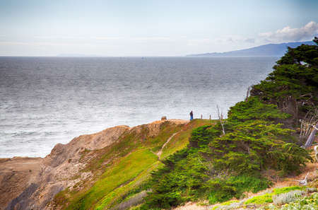 Scenic view from Sutro Baths Upper Trail on Pacific Ocean. Tourist spots in San Francisco, travel destinations in Bay Area, California landmarks, travel USA