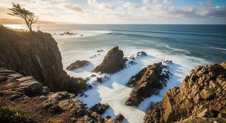Experience breathtaking coastal vistas from cliffside overlooks, offering panoramic views that stretch across the horizon, capturing the beauty of the seascape.AI Generated