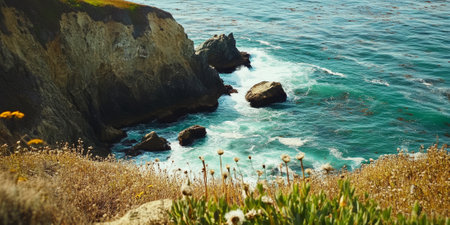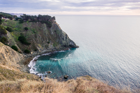 Beautiful view of the cliffs along the Pacific Ocean in California.