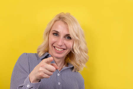 Cheerful Middle Aged Man Pointing Fingers At Camera, Blue Background