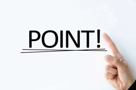 The banner is a wooden mannequin hand with an outstretched index finger pointing at a large empty space of the copy space.