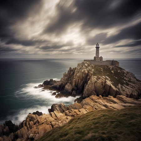 Captivating and serene, this landscape features a striking lighthouse against the vast sea. Ideal for travel, nature, and adventure themes. Generative AI Technology.