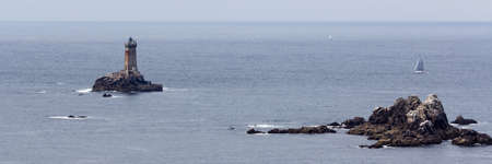 Lighthouse on a rock in the north of Brittany, Pointe du Raz and La Vieille (The Old Lady ) lighthouse, view from Cap Sizun in Brittany, France