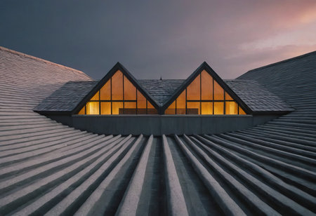 Roofs of a modern building in the evening, Germany.