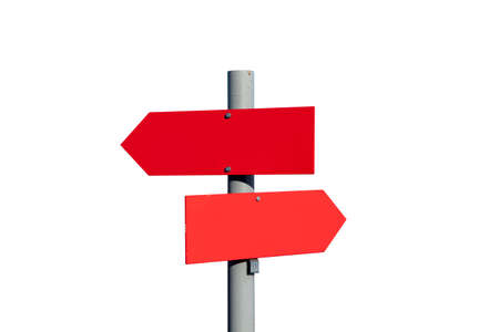 Red guidepost, space for text, isolated on white