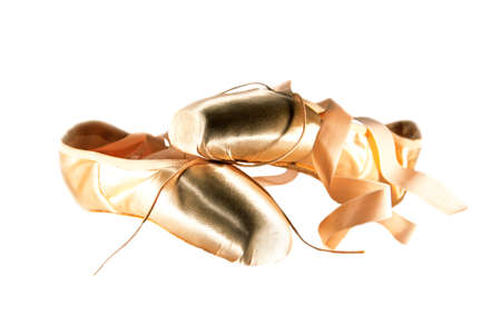 Pastel beige ballet pointe shoes or slippers with ribbon