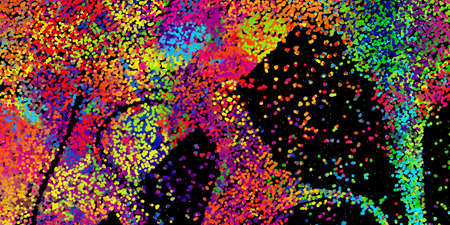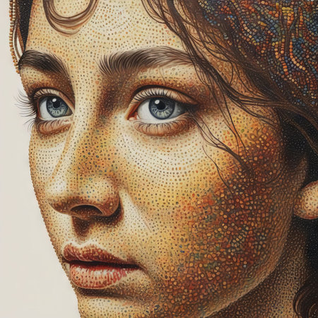 A close-up of a pointillist painting, focusing on the multitude of colorful dots creating a shimmering image