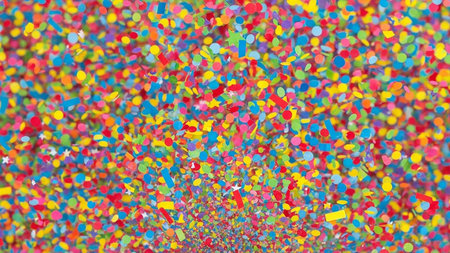A bright and colorful confetti spread across a surface brings life to any celebration, inviting joy and happiness. Perfect for vibrant event decorations and festive themes.