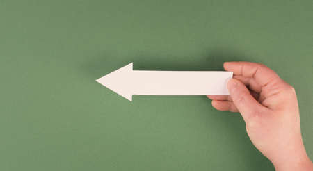 Arrow showing to the left side, pointing to a direction, business communication, colored background