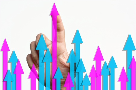 A hand touching a glowing arrow, symbolizing growth and progress in digital innovation.