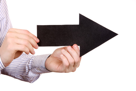 Person hold Black Arrow shape Isolated on the White Background