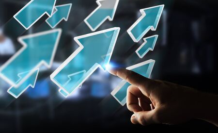 Businessman on blurred background using digital modern arrow 3D rendering