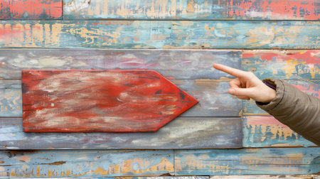Hand holding a red paper arrow pointing to the right