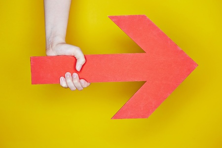 Hand holding a big red arrow pointing to the right