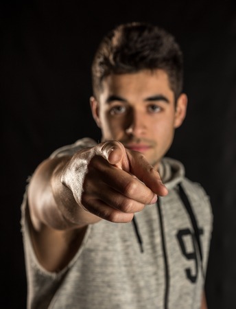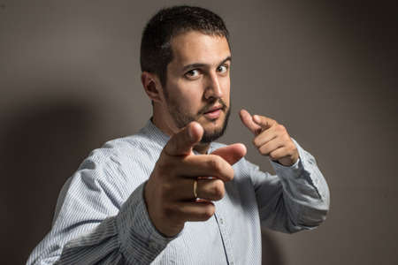 Portrait of a handsome guy pointing his finger at you