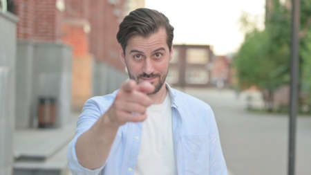 Inviting Man Pointing at the Camera while Standing Outdoor