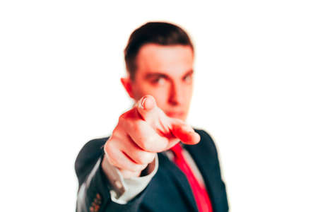 Portrait of a handsome guy pointing his finger at you