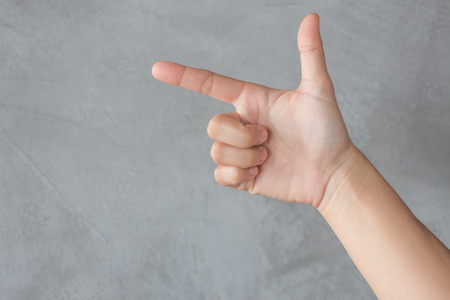 Hand action gesture on grey background, stock photo