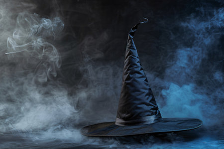 Halloween hat on dark background with smoke with copy space for text