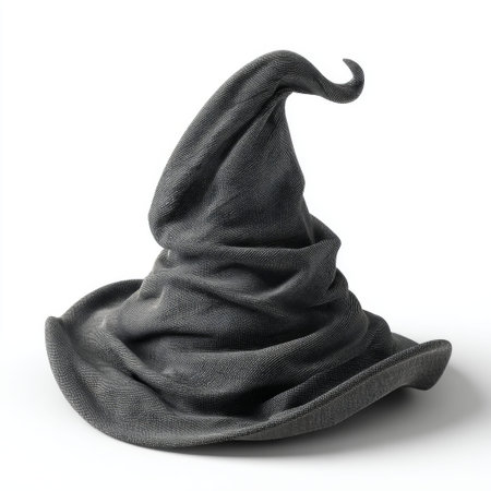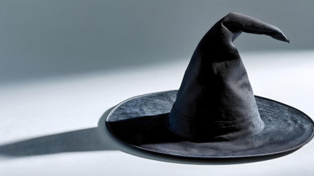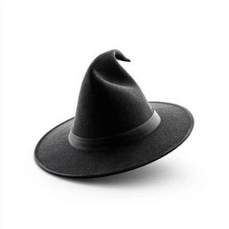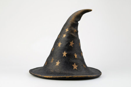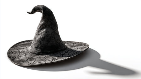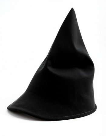 Enigmatic Black Witch Hat on White Background, Captivating Accessory for Halloween, Costume Parties, and Theatrical Performances, Witches and Wizards Theme