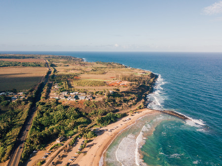 Aerial view of beach coastline in Hawaii, usa