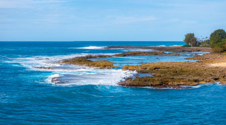Coastal View of Oahu with Rocky Shores and Vibrant Blue Ocean Waves