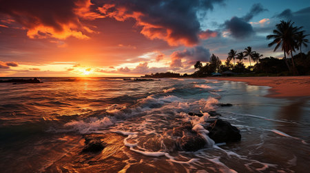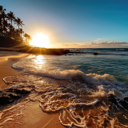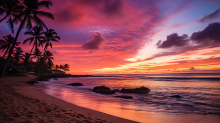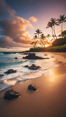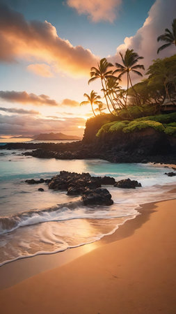 Hawaii beach sunset summer paradise vacation landscape.