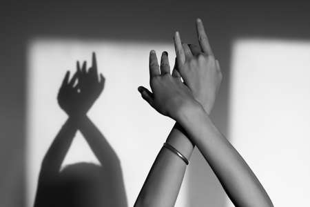 Black-white silhouette of female shoulders and arms. Female silhouette.