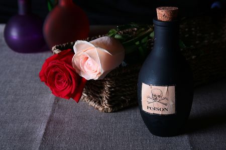 Poison bottles with Poison symbol and Skull and Crossbones.