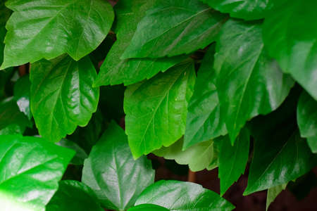 Natural green leaves texture background, nature greenery floral wallpaper tropical jungle pattern ecology green environment concept, green leaves wall background, flat lay, selective focus