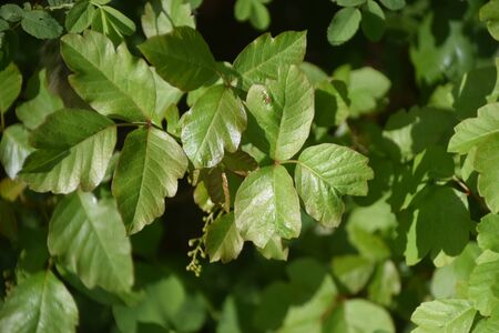 poison ivy plant with green leaves and thorns