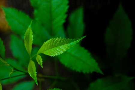 green leaves, shallow focus on the dark background