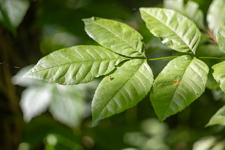 green leaves of covered by sunlight, close up