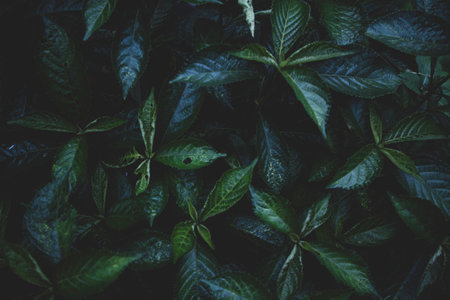 Dark background or texture of climbing plants with dense shiny leaves