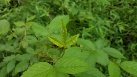 sprig of leaves on climbing blackberry plant