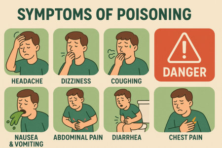 Visual representation detailing symptoms of poisoning such as nausea, dizziness, headache, abdominal pain, and chest pain to raise awareness about dangers.