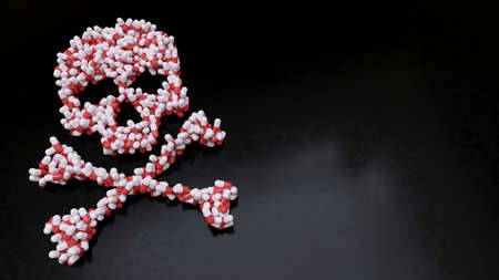 psychiatry medication pills killing by suicide drug addiction skull 3D illustration
