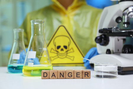 wooden box with hazard, toxic and warning signs concept hazard sign Danger Concept