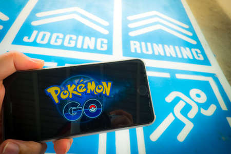 BANGKOK, THAILAND - August 12,2016: Pokemon Go is a free-to-play, GPS based augmented reality mobile game developed by Niantic for iOS and Android devices ,Lighting with sun flare