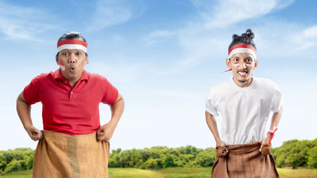 Indonesian people celebrate Indonesian independence day on 17 August with a sack race. Indonesian independence day