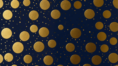This image features gold circles of different sizes scattered on a dark blue background, evoking a sense of elegance and abstract artistry. The contrast between the gold and blue enhances the visual appeal and modern sophistication.