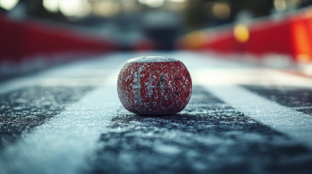 Cricket ball on the track in sunset light. Soft focus.